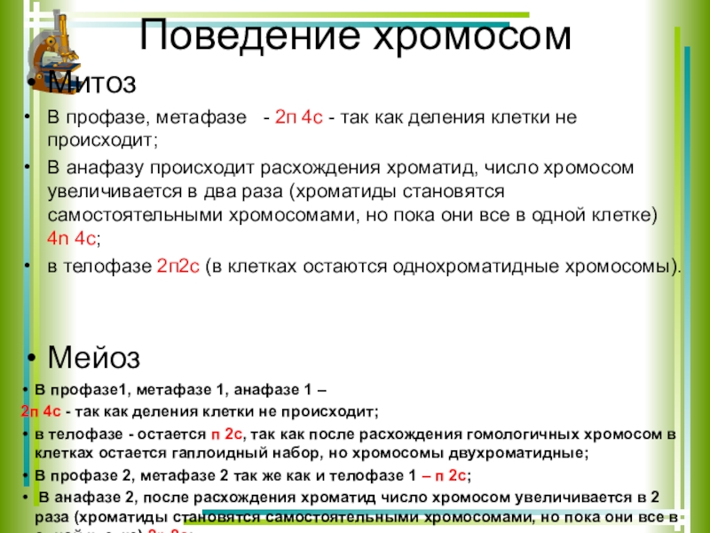 Слайд 6Поведение хромосом