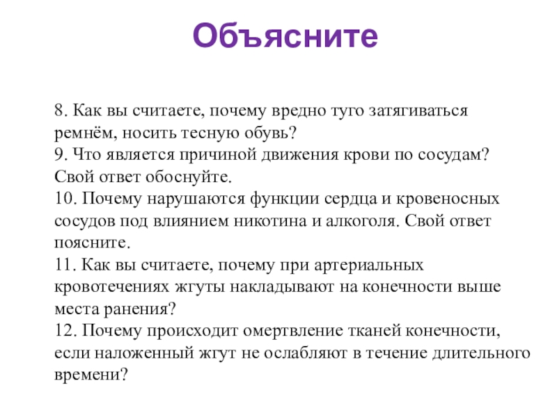 8. Как вы считаете, почему вредно туго затягиваться ремнём, носить тесную