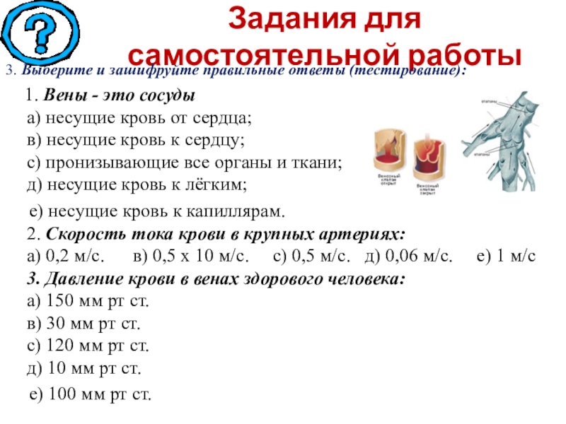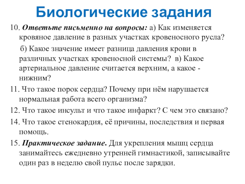 10. Ответьте письменно на вопросы: а) Как изменяется кровяное давление в разных