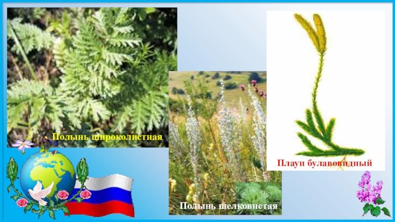 Флора России содержит более 12500 видов дикорастущих растений, более 2200 видов мхов, около 3000 видов лишайников. В почвах и водоемах России насчитывается 7-9 тысяч видов водорослей, число видов грибных организмов составляет около 20-25 тысяч.