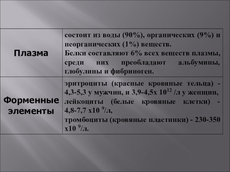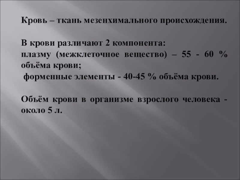 (межклеточное вещество) – 55 - 60 % объёма крови;
