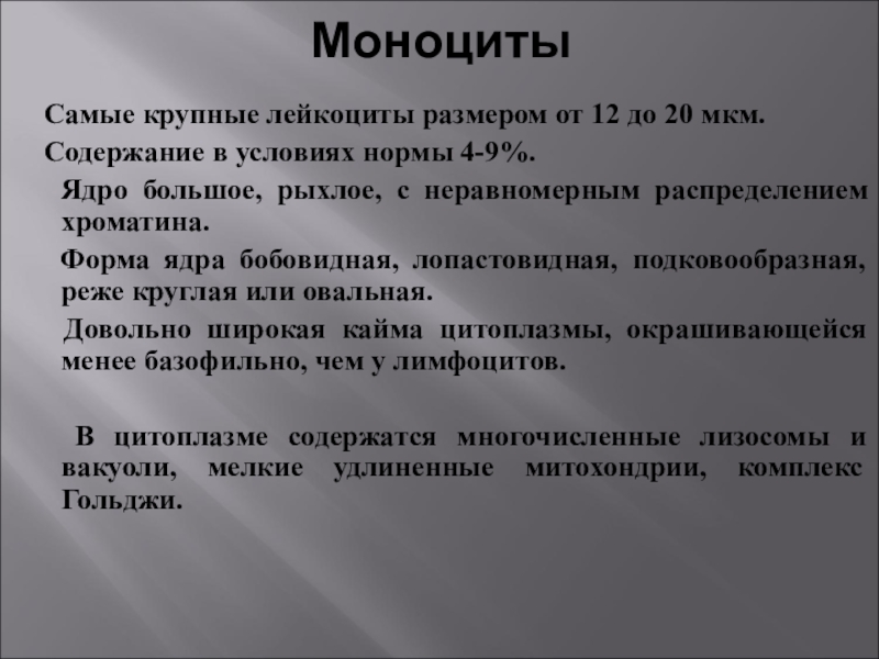 Самые крупные лейкоциты размером от 12 до 20 мкм.