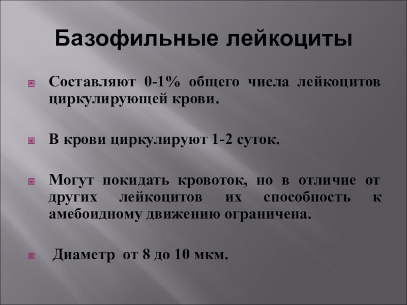 Составляют 0-1% общего числа лейкоцитов циркулирующей крови.