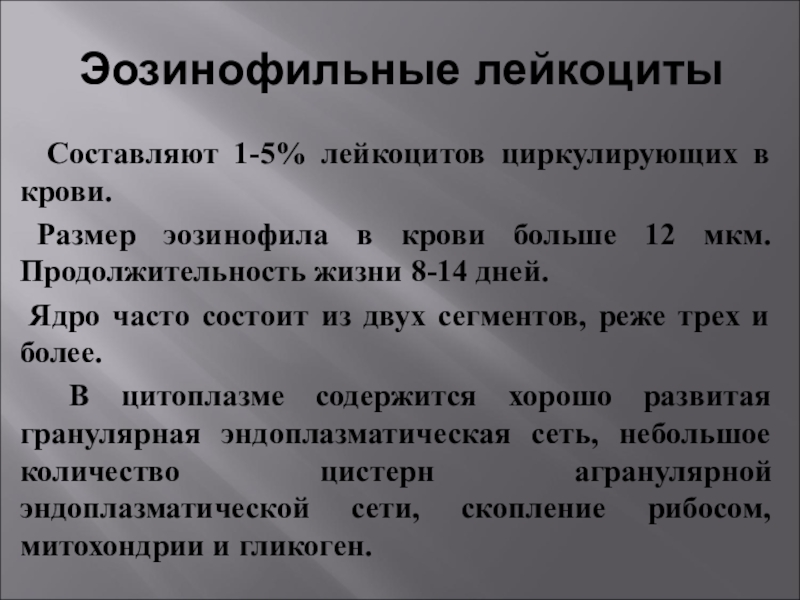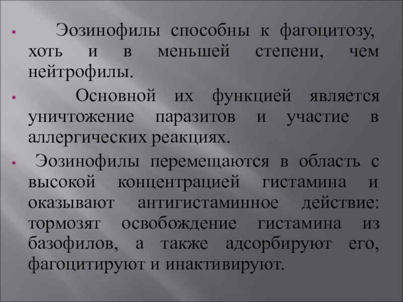 Слайд 21 Эозинофилы способны к фагоцитозу, хоть и в меньшей степени,
