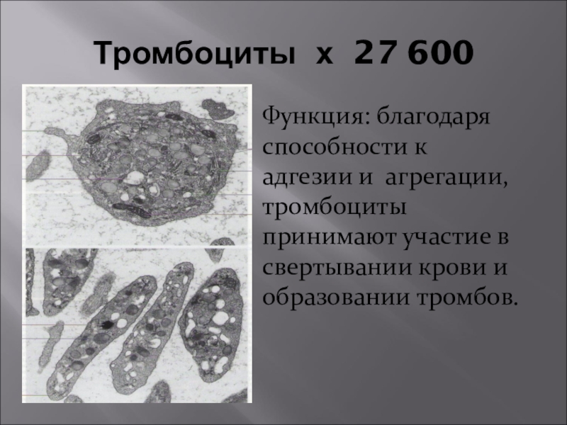 Функция: благодаря способности к адгезии и агрегации, тромбоциты