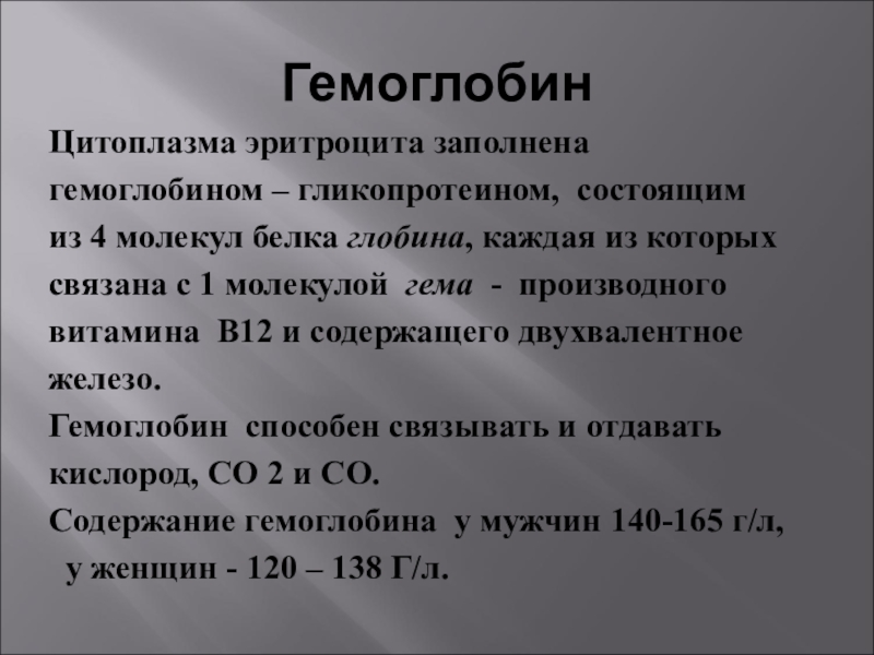Содержание гемоглобина у мужчин 140-165 г/л,