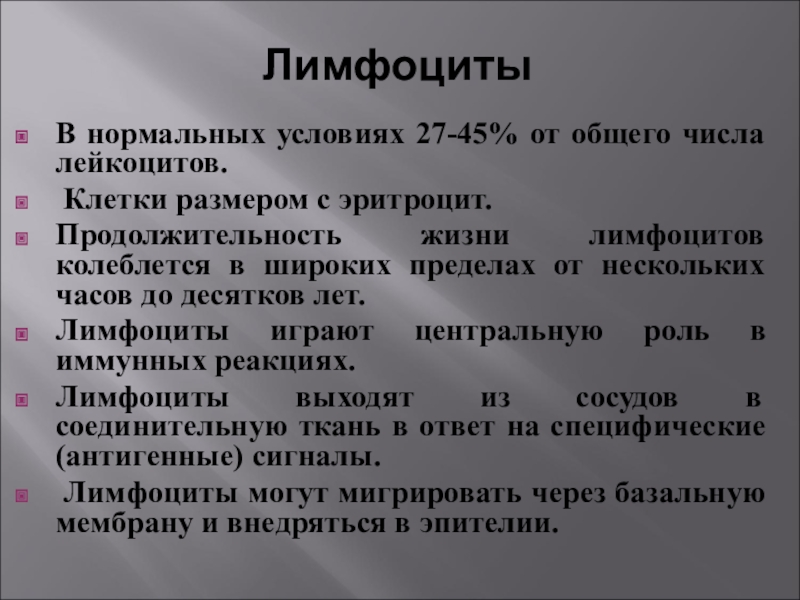 Продолжительность жизни лимфоцитов колеблется в широких пределах от нескольких часов до десятков лет.