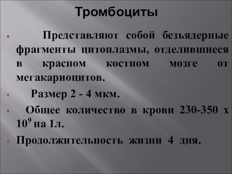 Представляют собой безъядерные фрагменты цитоплазмы, отделившиеся в красном костном