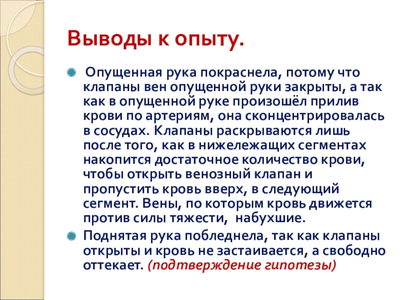Почему поднятая рука бледнеет, а опущенная краснеет?