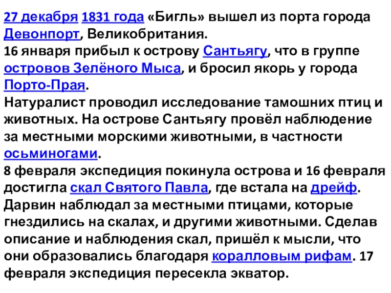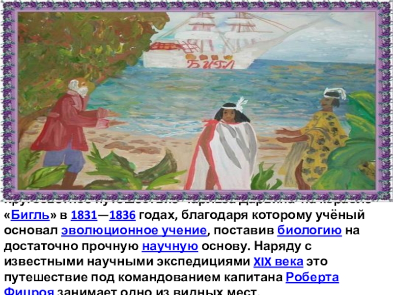 Слайд 4Кругосветное путешествие Чарльза Дарвина на корабле «Бигль» в 1831—1836 годах, благодаря которому