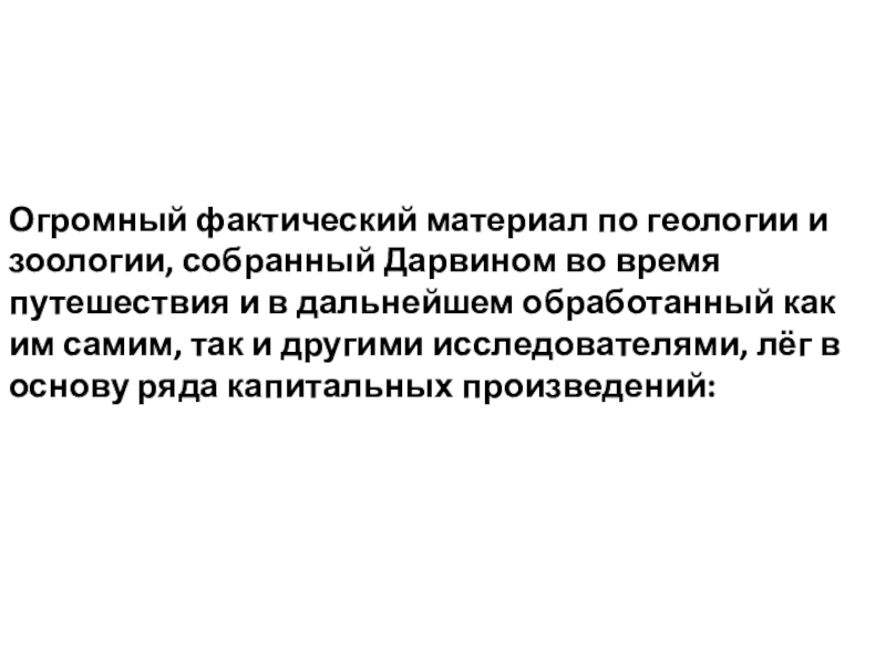 Слайд 35Огромный фактический материал по геологии и зоологии, собранный Дарвином во время
