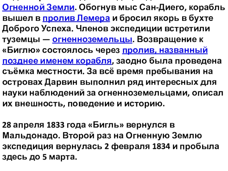 Слайд 1717 декабря 1832 года экспедиция достигла Огненной Земли. Обогнув мыс Сан-Диего,