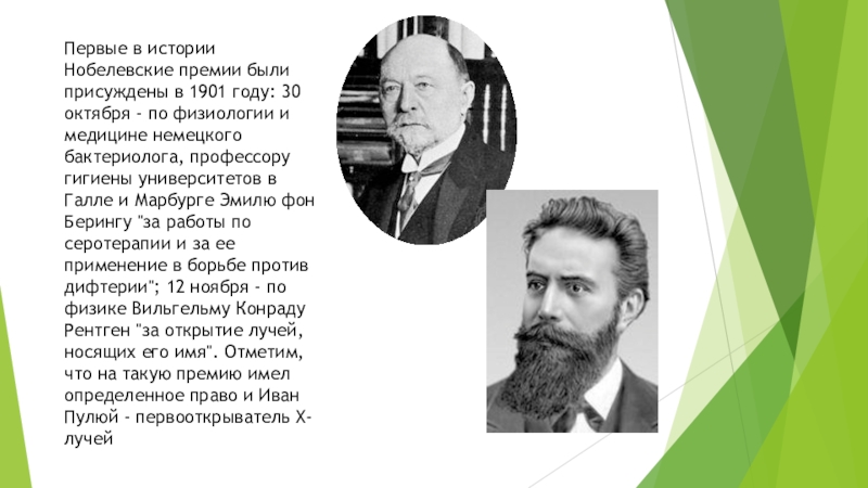 Слайд 5Первые в истории Нобелевские премии были присуждены в 1901 году: 30