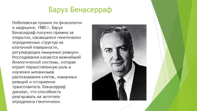 Нобелевская премия по физиологии и медицине, 1980 г. Барух Бенасерраф