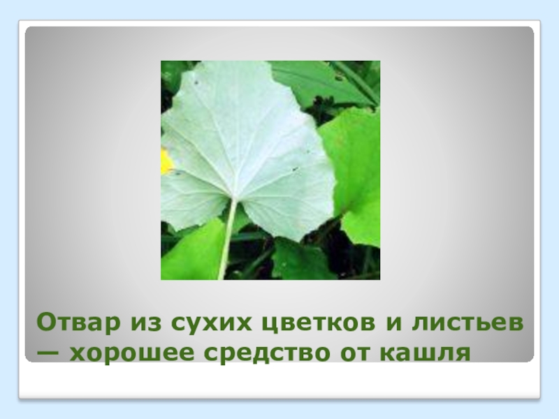 Слайд 11Отвар из сухих цветков и листьев — хорошее средство от кашля