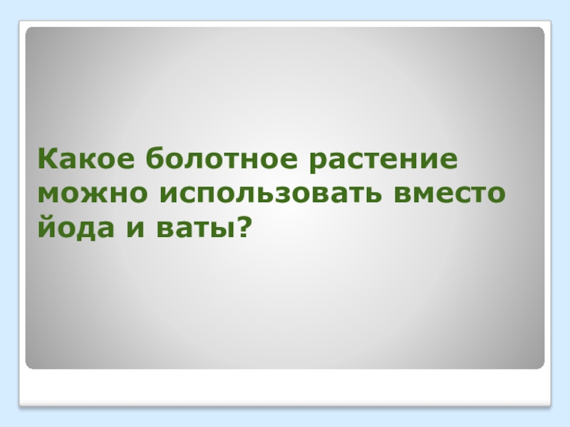 Слайд 8Какое болотное растение можно использовать вместо йода и ваты?