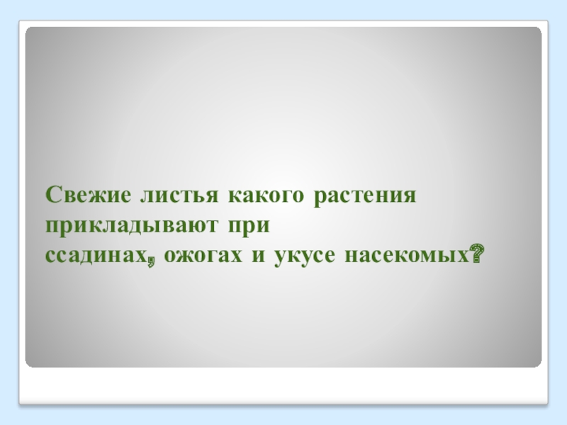 Слайд 2 Свежие листья какого растения прикладывают при ссадинах, ожогах