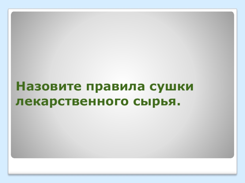 Слайд 18Назовите правила сушки лекарственного сырья.