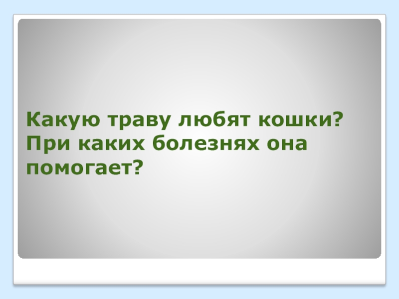 Слайд 12Какую траву любят кошки? При каких болезнях она помогает?