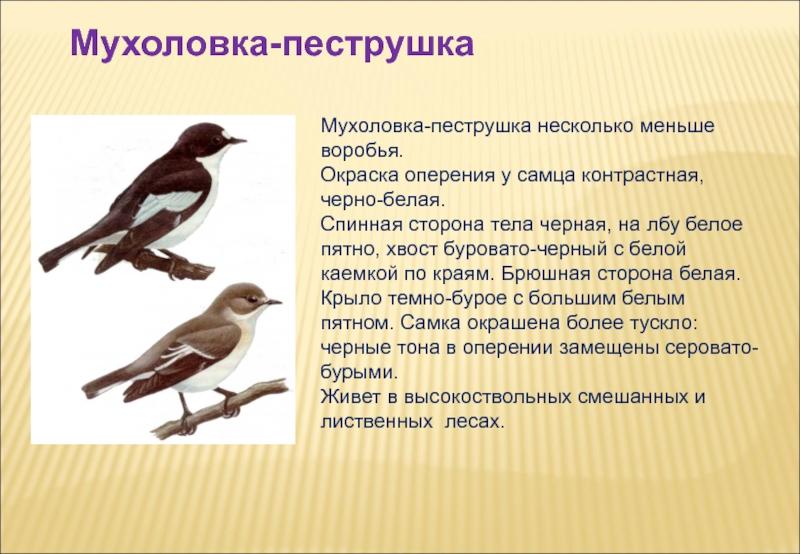 Слайд 16Мухоловка-пеструшка несколько меньше воробья.