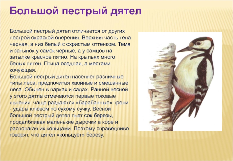 Слайд 19Большой пестрый дятел