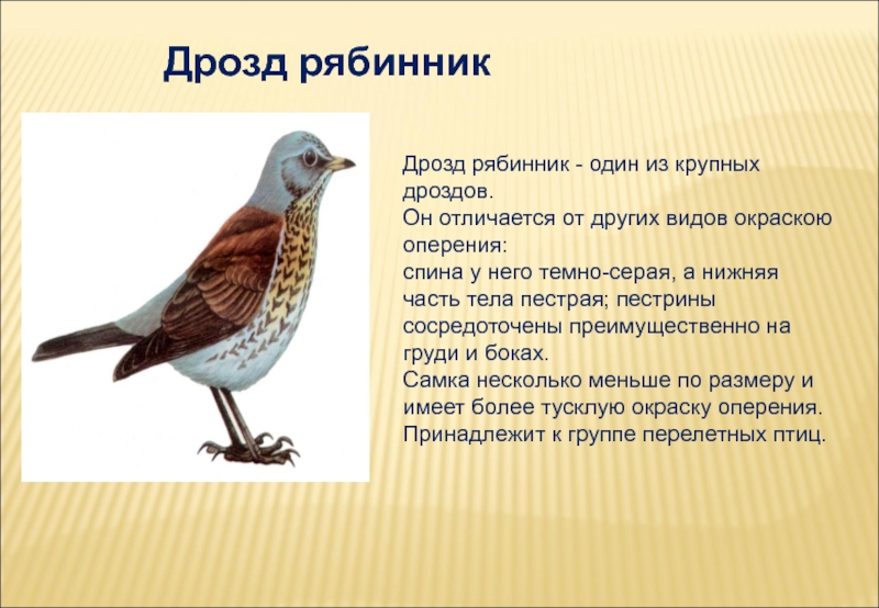 Слайд 13Дрозд рябинник - один из крупных дроздов.