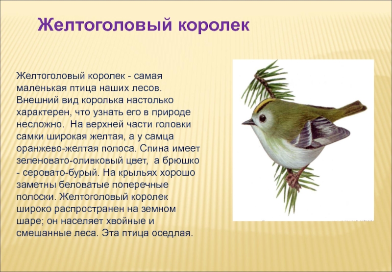 Слайд 15Желтоголовый королек