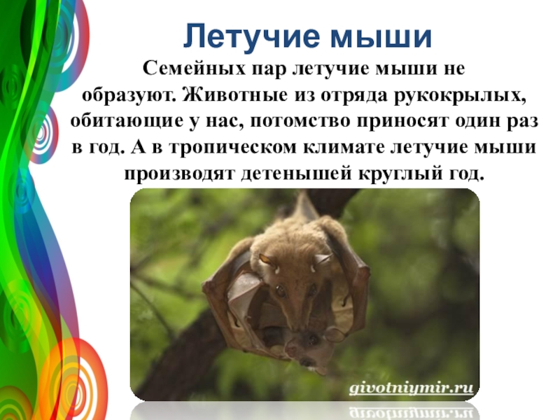 Семейных пар летучие мыши не образуют. Животные из отряда рукокрылых, обитающие