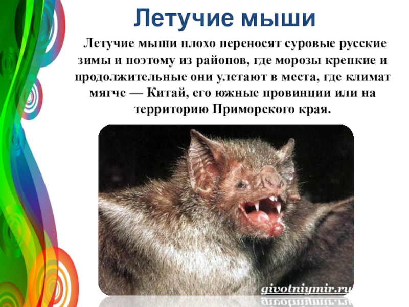 у нас, потомство приносят один раз в год. А в тропическом климате летучие мыши производят детенышей круглый год.