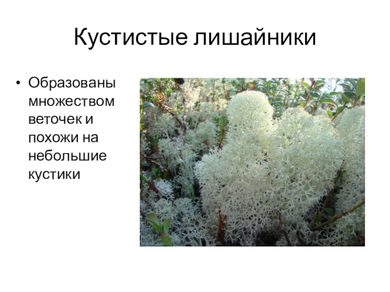Кустистые лишайникиОбразованы множеством веточек и похожи на небольшие кустики