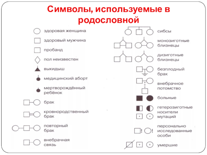 составляется краткая запись с точной характеристикой его родства с пробандом, так называемая легенда родословной.