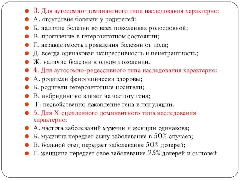 Слайд 453. Для аутосомно-доминантного типа наследования характерно: