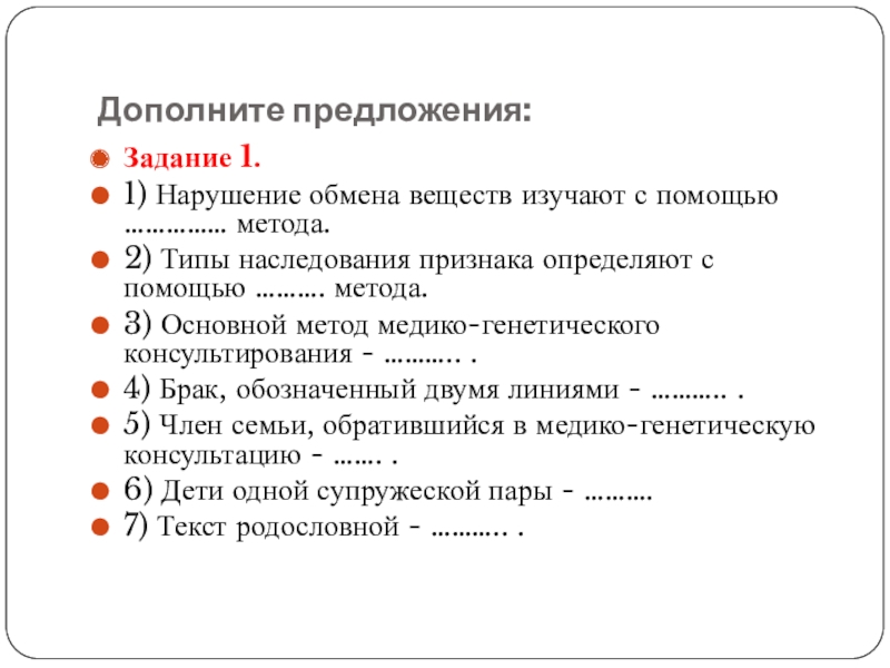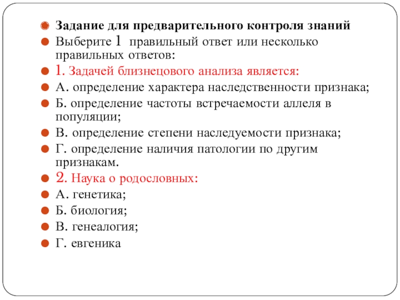 Слайд 4Генеалогический метод используется при решении следующих проблем: