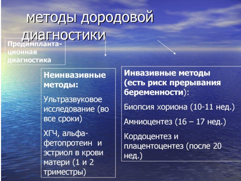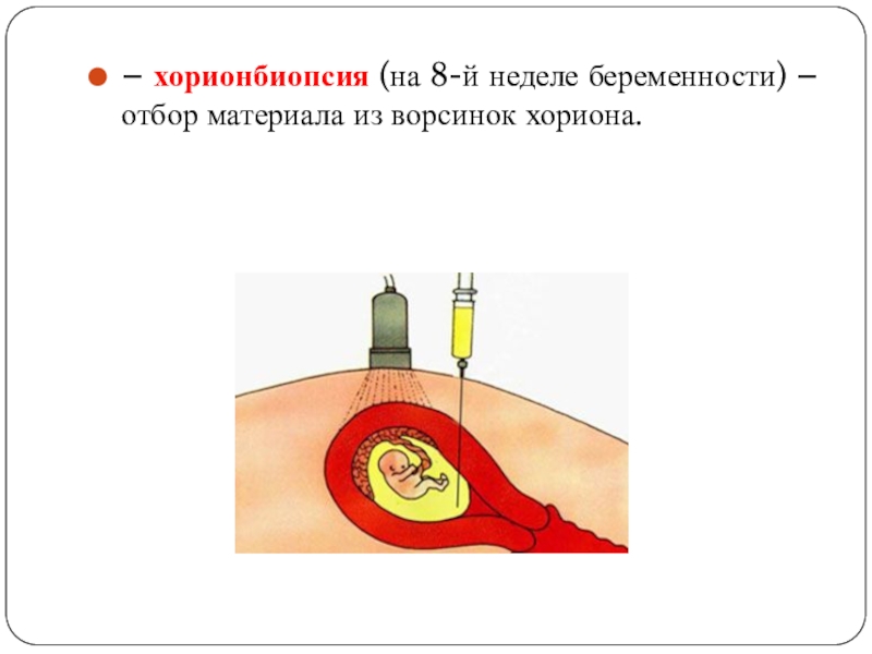 Слайд 36– хорионбиопсия (на 8-й неделе беременности) – отбор материала из ворсинок