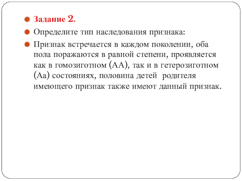 Примерно четверть детей родителя имеющего признак также имеют данный признак;