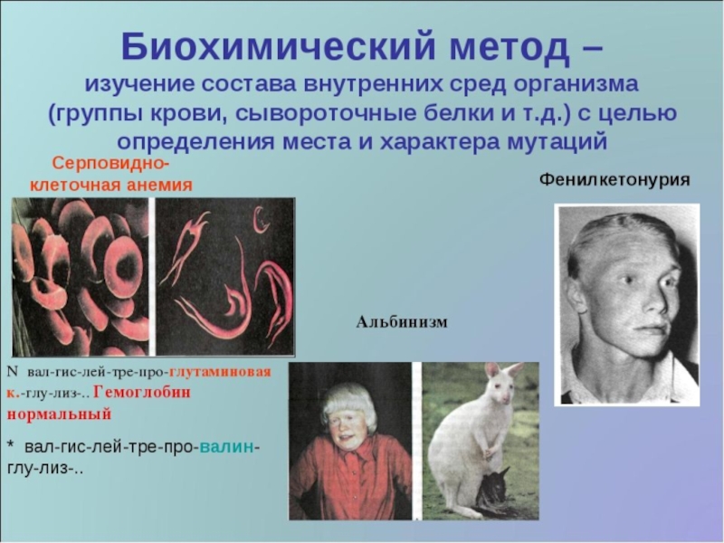 1) Нарушение обмена веществ изучают с помощью биохимического метода.