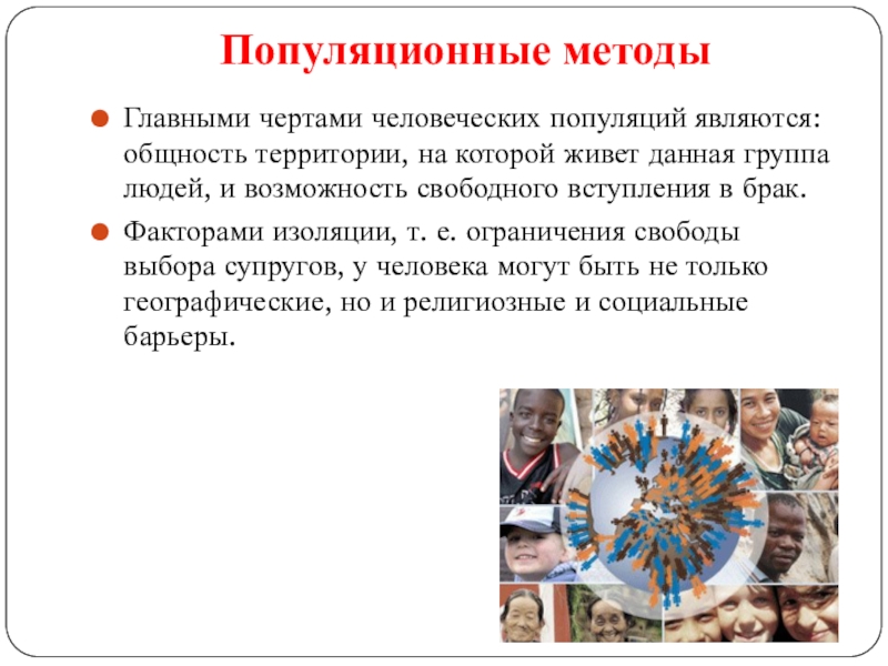 Факторами изоляции, т. е. ограничения свободы выбора супругов, у человека могут быть не только географические, но и религиозные и социальные барьеры.