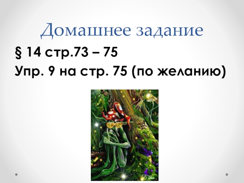 Домашнее задание§ 14 стр.73 – 75Упр. 9 на стр. 75 (по желанию)