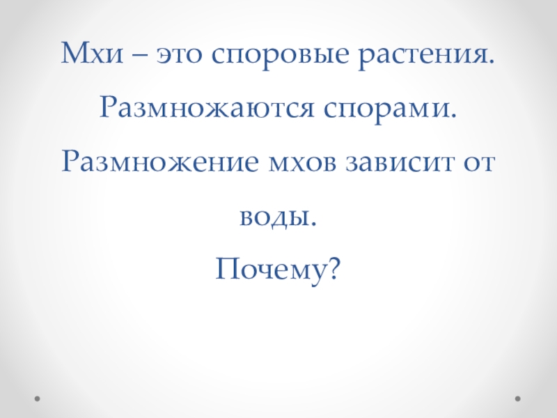 Мхи – это споровые растения. Размножаются спорами. Размножение мхов зависит от воды. Почему?