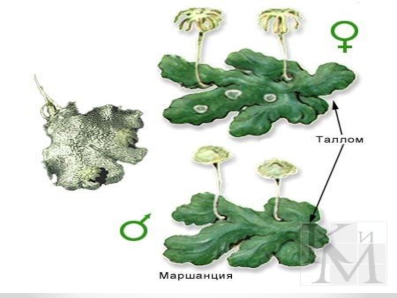 Слайд 8Самым древним представителем мхов является печеночный мох – маршанция. Почему?
