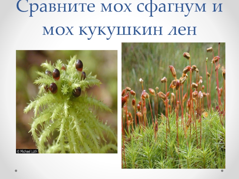 Слайд 5Сравните мох сфагнум и мох кукушкин лен