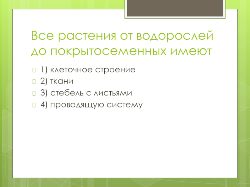 Слайд 6Все растения от водорослей до покрытосеменных имеют