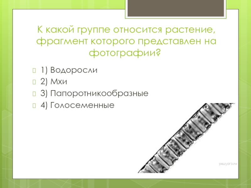 Слайд 54К какой группе относится растение, фрагмент которого представлен на фотографии?
