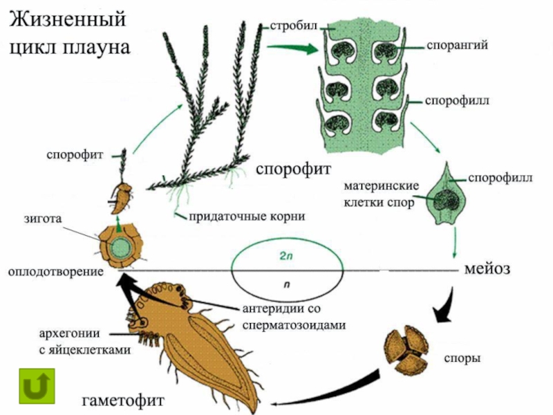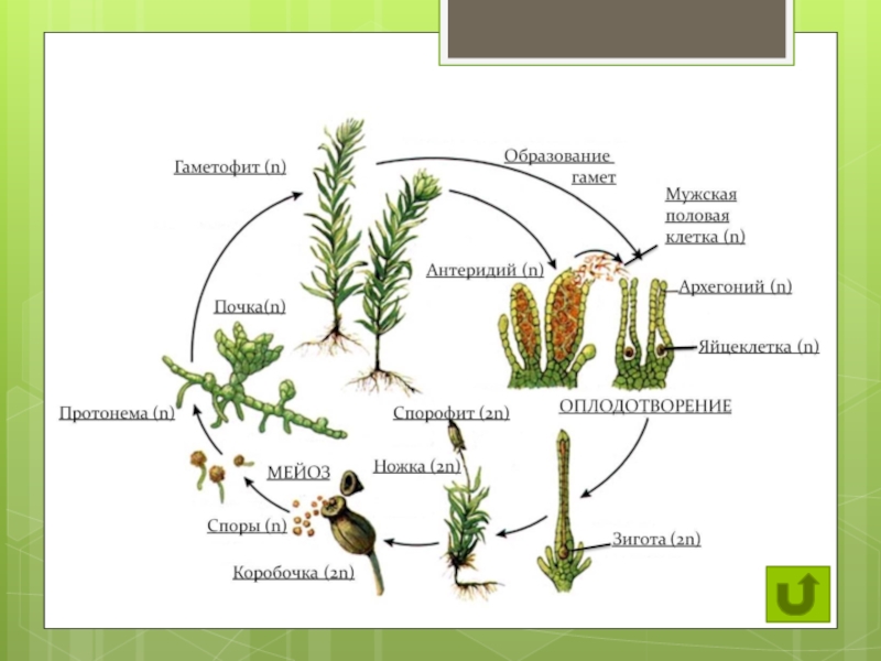 преобладанием спорофита. В жизненном цикле происходит чередование полового и бесполого размножения