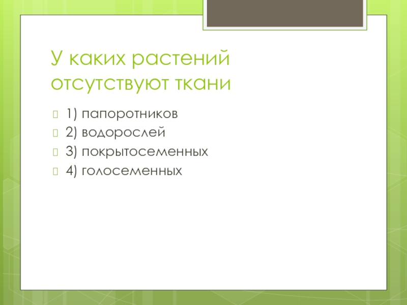 Слайд 65Какие признаки являются общими для моховидных и папоротникообразных растений? Выберите три