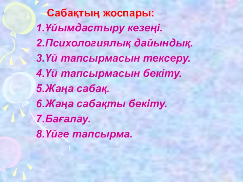 Үй тапсырмасы: