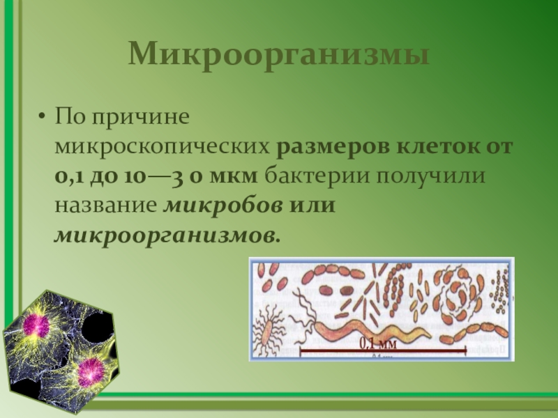 По причине микроскопических размеров клеток от 0,1 до 10—3 0 мкм бактерии получили