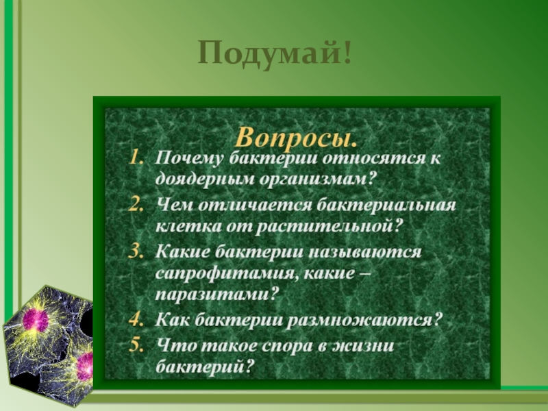 Бактерии - мельчайшие прокариотические организмы, имеющие клеточное строение. По