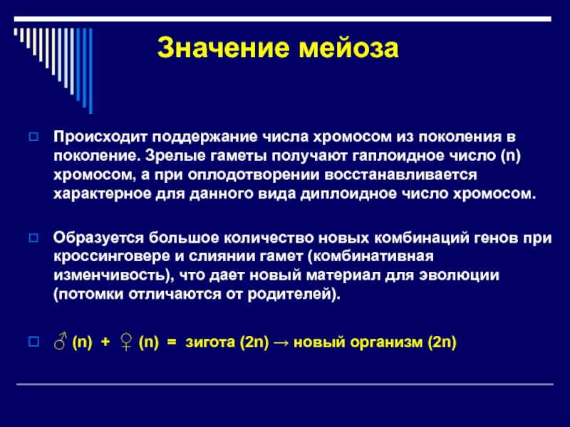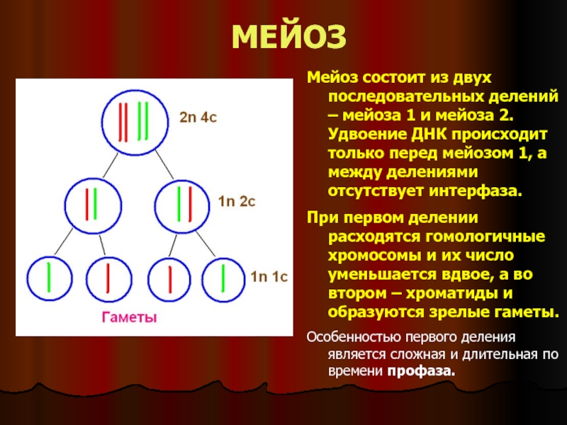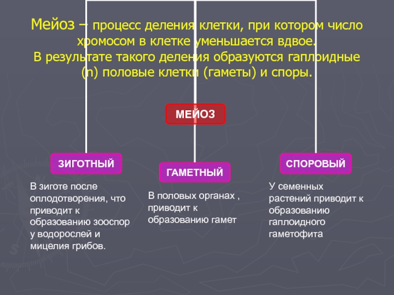 Слайд 15Мейоз – процесс деления клетки, при котором число хромосом в клетке