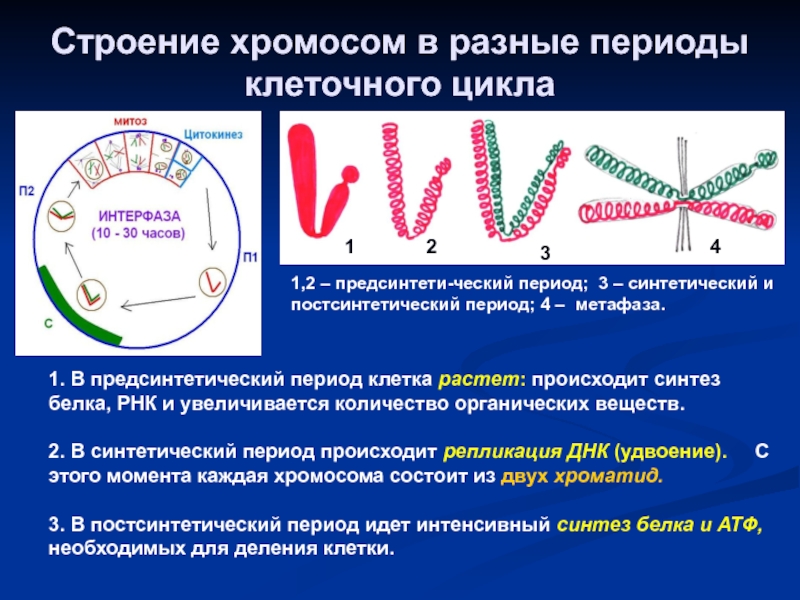 Слайд 4Строение хромосом в разные периоды клеточного цикла